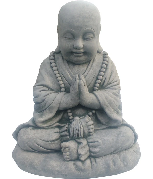 Sie wollen Ihren Garten mit der richtigen Dekoration in eine Ruheoase verwandeln? Dann schauen Sie sich den Stein-Mönch auf Kissen doch einmal genau an! Seine traditionelle Lotushaltung erinnert jeden, der Ihren Garten betritt, daran, sich regelmäßig zu entspannen. Der kleine Mönch hat es sich auf einem Kissen bequem gemacht, vielleicht stellen Sie sich auch einen Liegestuhl in die Nähe, um diesen Ort der Erholung mit Ihrer neuen Deko-Figur zu genießen. Sie überzeugt außerdem bei näherem Betrachten mit zahlreichen Details. Die filigranen Gesichtszüge, die feingearbeitete Kette sowie die einzelnen Falten ihres Gewandes zeigen sofort, dass Sie hier ein Qualitätsprodukt erworben haben. Holen Sie also schon einmal die Yoga-Matte heraus und erfreuen Sie sich an der gemütlichen Atmosphäre in Ihrem Garten mit dem Stein-Mönch auf Kissen!